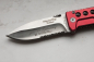 Ein preisgünstiges Rettungsmesser von Herbertz, dass durch seinen roten Griff auffällt.